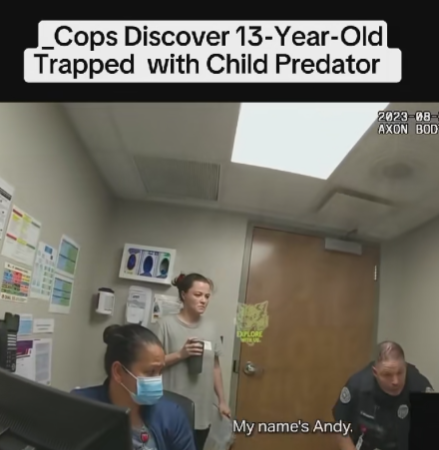 The footage shows officers entering a small room where the young girl appeared frightened but unharmed. A man, later identified as a 35-year-old suspect, was inside with her. “My name’s Andy,” the man can be heard saying in the video as police begin questioning him. His calm demeanor contrasts sharply with the shock of the officers who quickly realize the gravity of the situation.