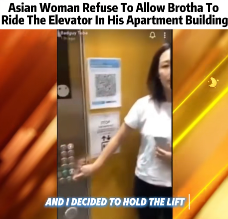 The short clip shows an Asian woman standing near the elevator buttons, pressing the door-close button repeatedly while blocking the entrance. A man filming from outside can be heard calmly asking, “Can I come in? I live here.” Instead of allowing him to enter, the woman continues to hold the doors and insists, “No, I don’t know you. You can wait for the next one.”