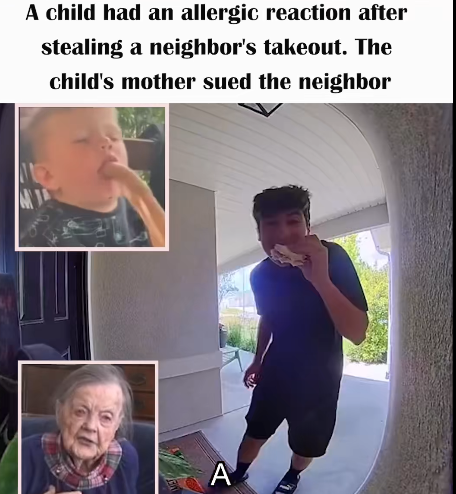 In a bizarre and controversial case that has divided opinions online, a mother is suing her elderly neighbor after her young son suffered an allergic reaction — but the twist? The food in question wasn’t given to the child… he allegedly stole it from the neighbor’s doorstep.