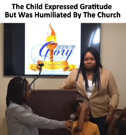 The incident unfolded during what appeared to be a testimony or appreciation segment at the Hope of Glory church. The young girl, encouraged to speak into the microphone, stepped forward with nothing but sincerity and kindness in her voice. She wasn’t causing trouble. She wasn’t being disrespectful. She was simply doing what children do best: speaking honestly.