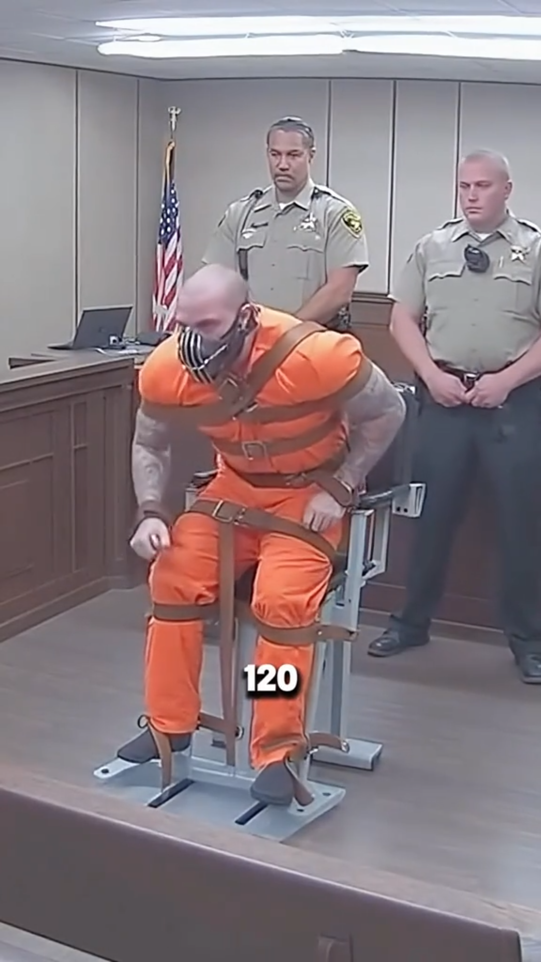 He was restrained, strapped into a chair, and spent the rest of the hearing muttering:
