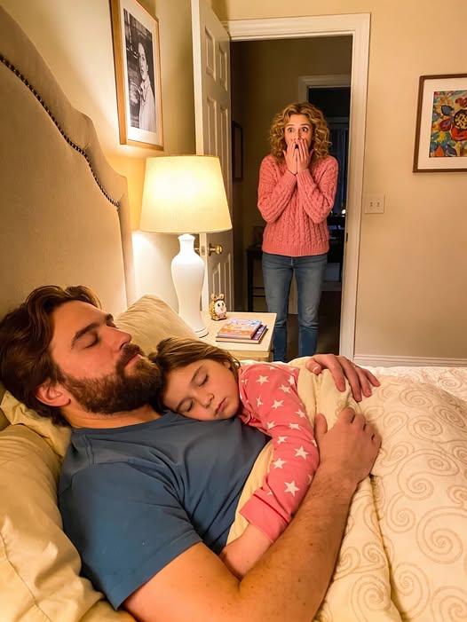 I tried to approach it logically at first. I checked her bed every night before turning off the light, smoothing the sheets, counting stuffed animals, making sure nothing could be crowding her space. I left the door slightly open so the hall light spilled in, adjusted the nightlight, asked her gently if anything scared her. Emily always shook her head. She wasn’t frightened, she said. Just uncomfortable. “It feels like I don’t have enough room,” she explained one evening, frowning as if trying to solve a puzzle with words that didn’t quite fit. “Like I have to move over.” The way she said it—so matter-of-fact, without drama—made my skin prickle. My husband Daniel listened to me recount this one night while he loosened his tie, exhaustion etched into his face after a double shift at the hospital. He kissed my cheek and told me not to worry. Kids imagined things. Our house was safe. Nothing strange was happening. I wanted to believe him, and part of me did, but another part—the quiet, stubborn part that had kept me awake since Emily’s question—refused to settle. A few days later, without telling anyone, I ordered a small security camera. I told myself it was just for peace of mind, something to prove that nothing was wrong. Installing it felt almost silly, but the moment it blinked on in the corner of Emily’s room, I felt a strange sense of control return. That night, I checked the feed before bed. Emily slept sprawled diagonally across the mattress, blankets kicked halfway to the floor, exactly as children do when they have all the space in the world. I went to sleep convinced I’d been