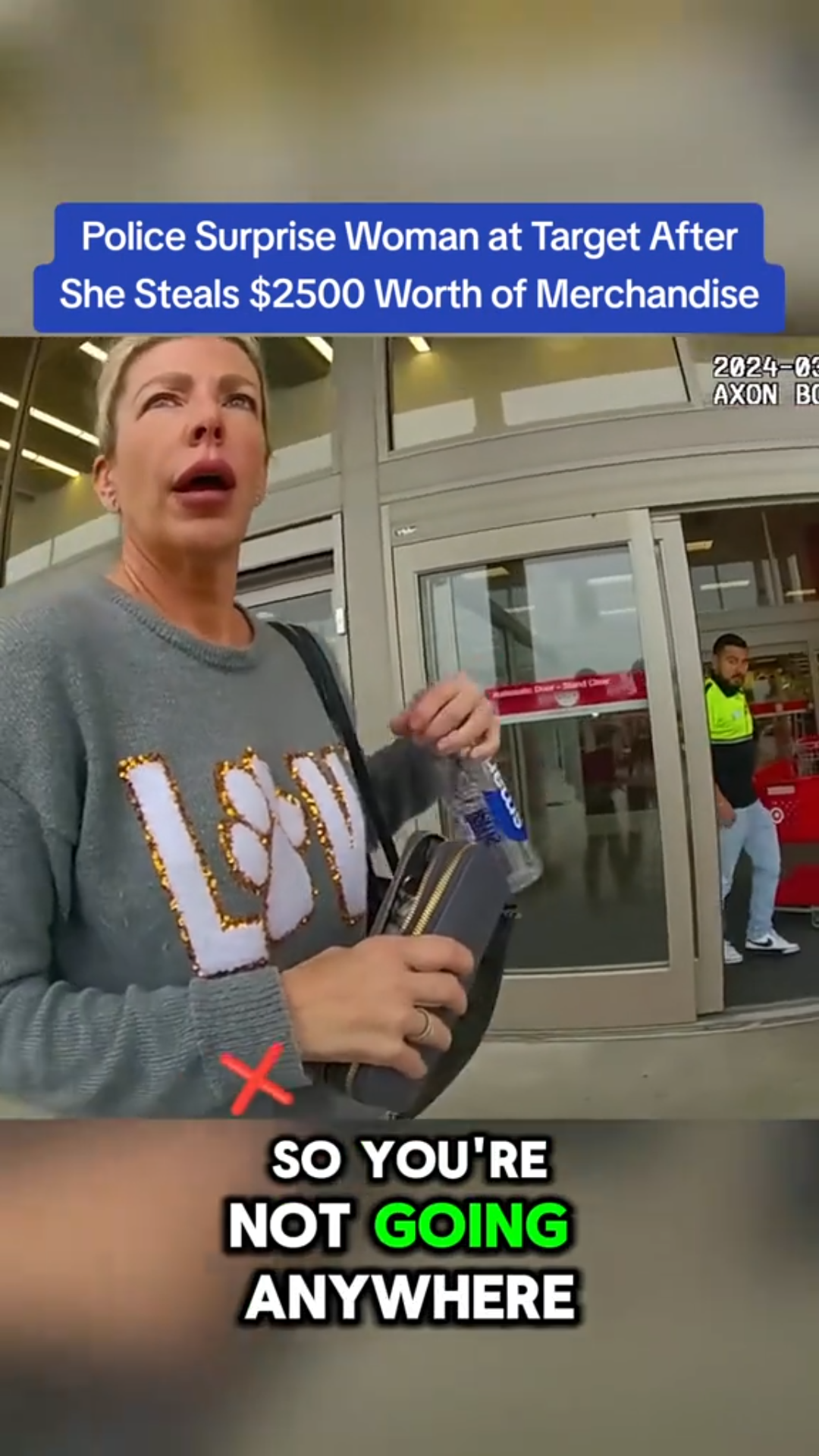 The woman was taken into custody on-site, and officers praised the quick work of both store security and law enforcement. Bodycam and surveillance footage captured the moment she realized the police were waiting — her shock and panic quickly became a viral clip online.