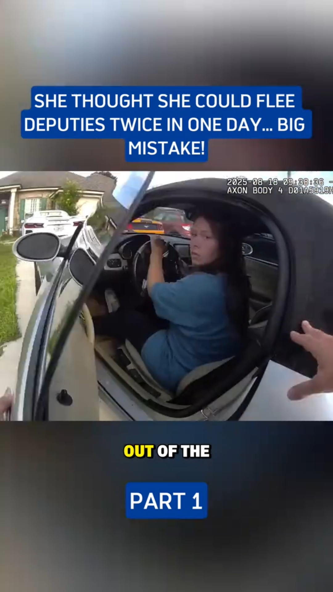 The first chase started after she was pulled over for reckless driving. Instead of stopping, she hit the gas, leading officers on a pursuit before eventually being caught and cited. Hours later, shockingly, she did it again — fleeing during a separate encounter that afternoon.