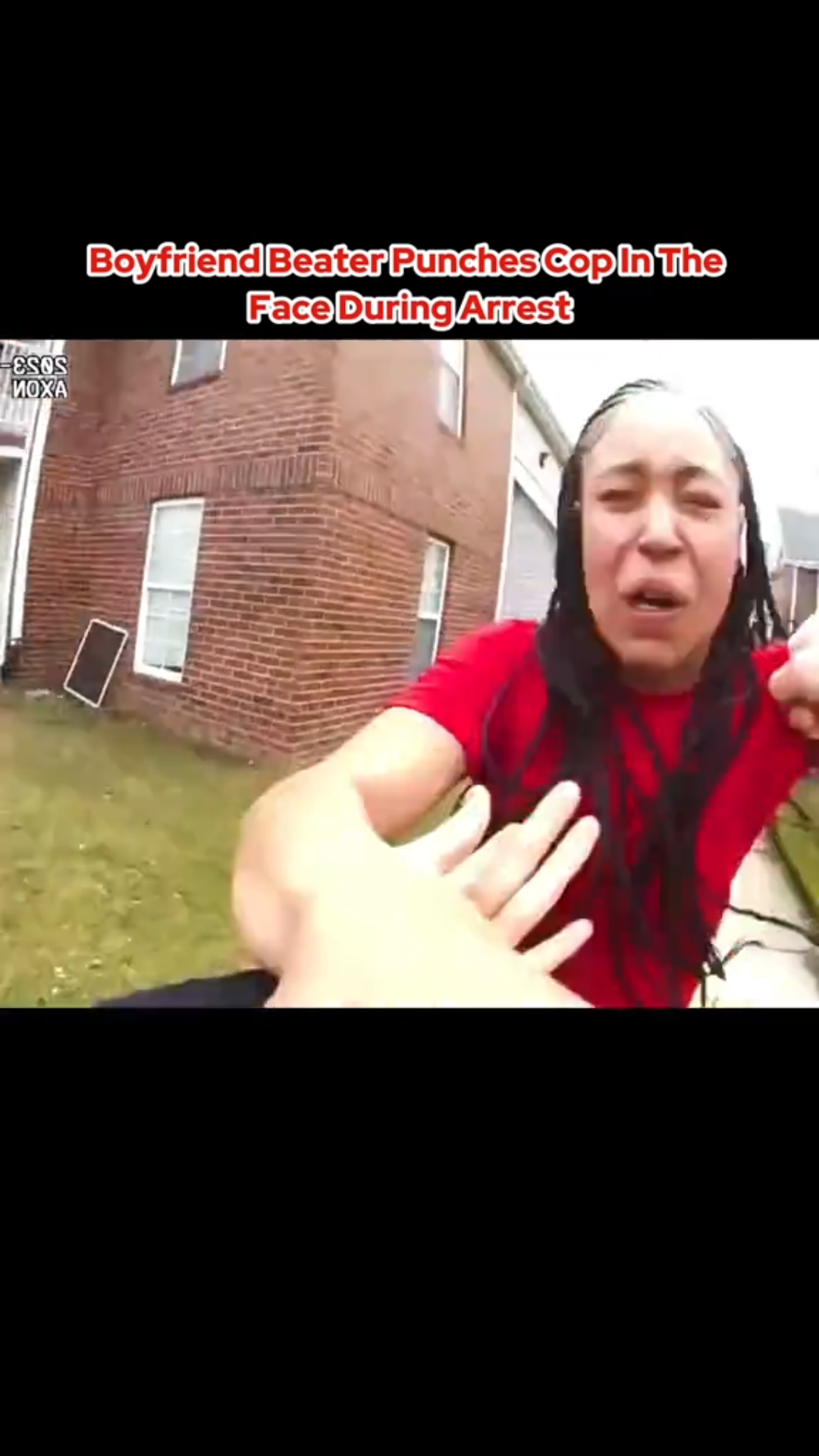 Bodycam footage shows officers attempting to detain her after responding to a domestic violence call. Instead of complying, the woman lashed out, striking one of the officers and shouting as police quickly subdued her.