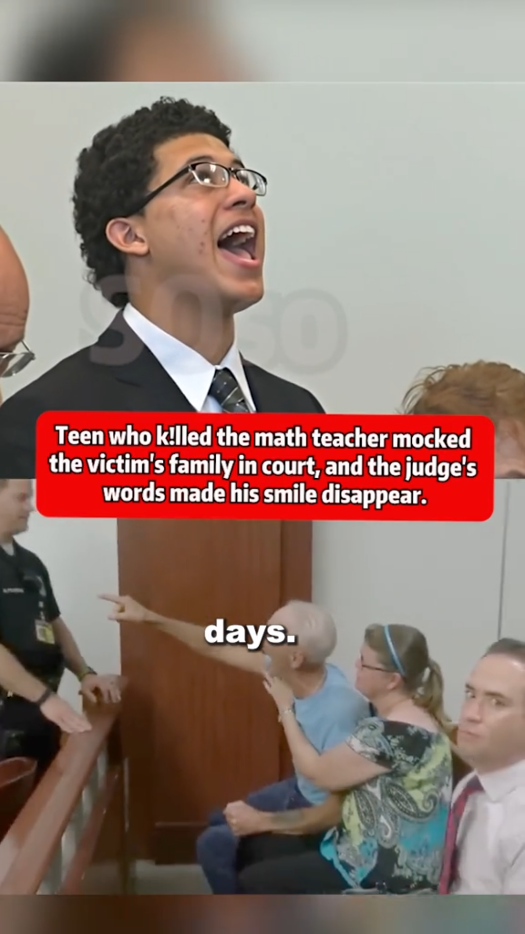 Courtroom silence turned to stunned murmurs when a teenage defendant, already facing charges in the fatal shooting of his math teacher, openly mocked the victim’s family during a hearing. Cameras caught the moment he smirked and made dismissive comments as relatives rose to speak — a display that only deepened the pain of everyone in the room.