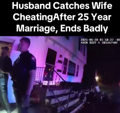 According to reports, the husband allegedly uncovered evidence of his wife’s affair and confronted her in the family home. What began as an emotional exchange spiraled into a heated scene that prompted neighbors to call authorities. The bodycam footage shows flashing lights outside the residence as officers attempt to calm the situation.