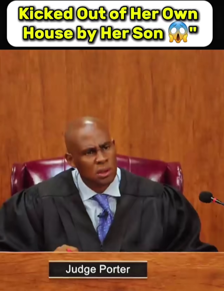 As the story came to light, the courtroom fell silent. Judge Porter leaned forward, visibly confused and concerned. “Wait — you’re telling me your son kicked you out of your own house?” he asked in disbelief. The mother nodded, explaining how she had been left with nowhere to go, betrayed by the very person she had raised.